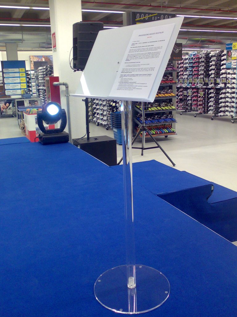 Leggio trasparente realizzato in plexiglas trasparente.