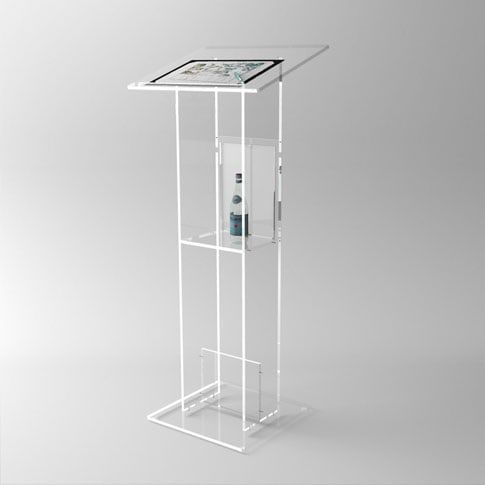 Leggio con basamento, tubo di sostegno e piano d’appoggio completamente in plexiglas