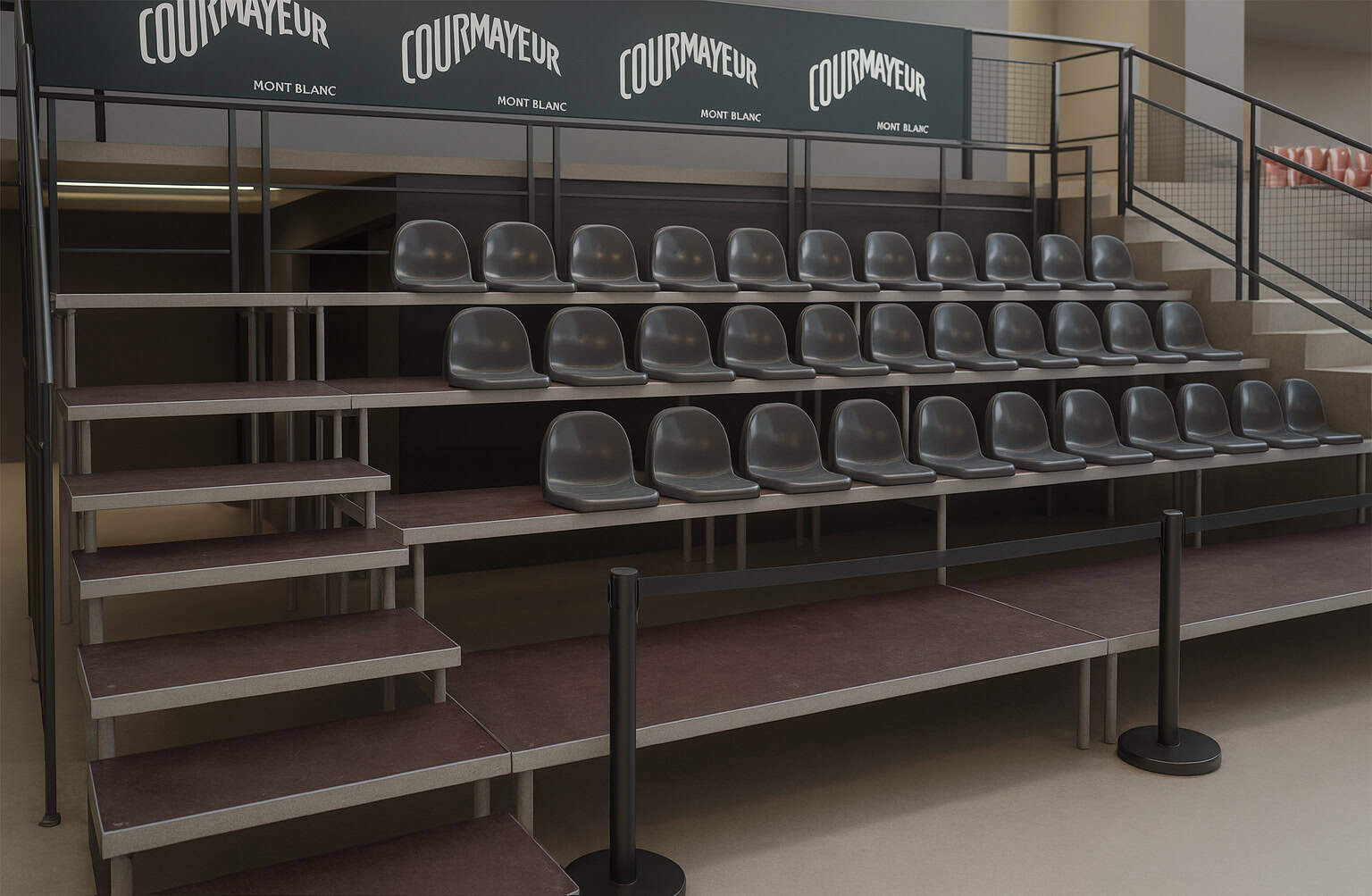 Oltre alle classiche tribune in struttura metallica possiamo realizzare tribune personalizzate sia nelle dimensioni che nel rivestimento.